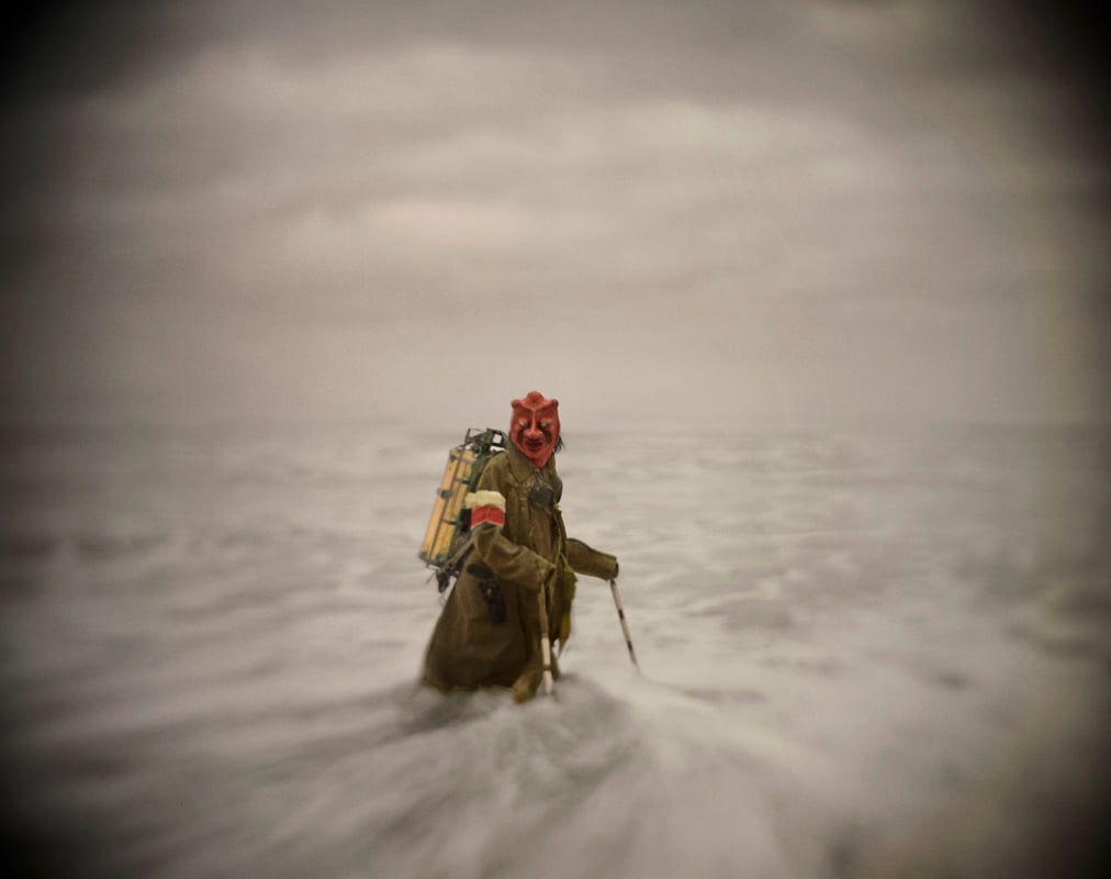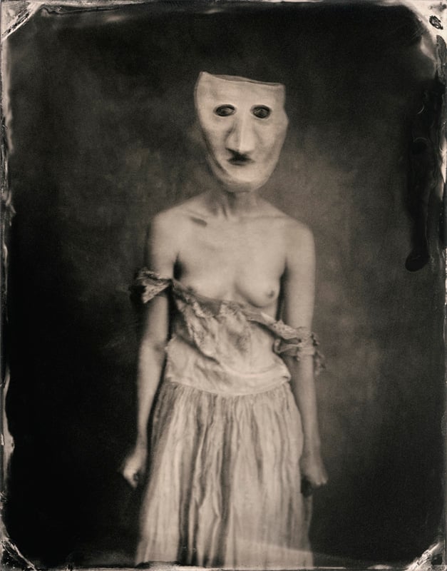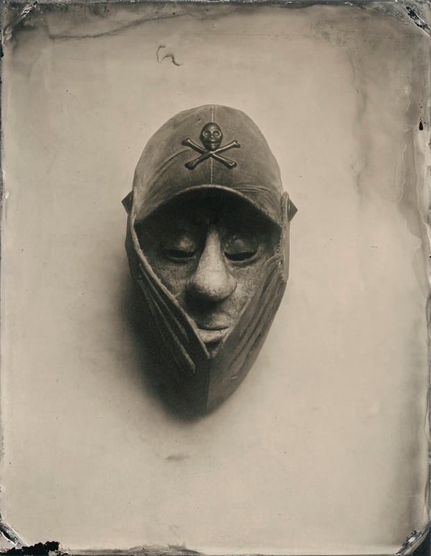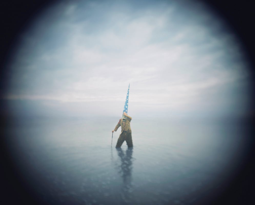The scenarios document a species as seen everyday through the eyes of the artist, with the writings of Edgar Allan Poe serving as a beacon of light and a source of inspiration. Mask-making, sculpture, and costume design is a colossally important part of the process, defining the unique and demented little world Anthony lives and shoots in. The mysteries of the sea figure greatly in these pictures with a crescendo of color images depicting survivors braving waves and currents, perhaps the result of a future world where ocean tides will wash away the planet’s coastlines.